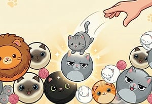 But don't be fooled by their adorable appearance; space is limited and the feline mayhem can spill over at any moment - can you manage a bunch of different cats in ball form to create the ultimate feline before the box explodes? Try to unlock new types of cats with unique traits and get special jokers that will break the established rules, giving you tools to save a desperate game or create massive combinations in the blink of an eye. Get ready to have a good time!
